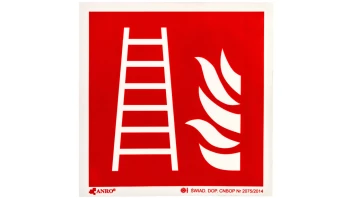 Samoprzylepna tabliczka ostrzegawcza /Drabina z płomieniem 150x150/ IF/003/F/FS