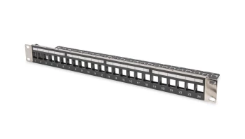 Panel krosowy modularny 19 24x keystone, ekranowany, 1U, srebrny, prowadnica kabli, wymienne pola opisowe, galwaniz DN-91411-G