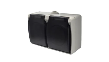 Gniazdo podwójne z uziemieniem natynkowe z klapką dymną Aqua Plus IP54 szaro grafitowe/ 40119