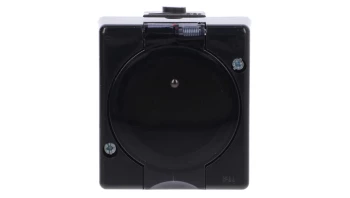 Gniazdo hermetyczne pojedyncze z uziemieniem Karlik Junior 12GHE-1D (klapka dymna) 2P+Z bez przesłon czarne