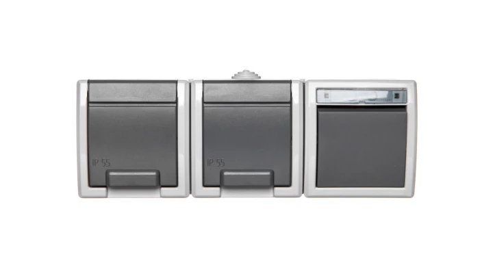 Aquant Łącznik hermetyczny schodowy z gniazdami z/u IP55 szary 1249-10