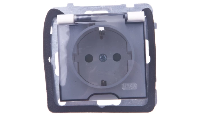 AS Gniazdo bryzgoszczelne z/u Schuko IP44 z przesłonami klapka przezroczysta ecru GPH-1GSP/m/27/d