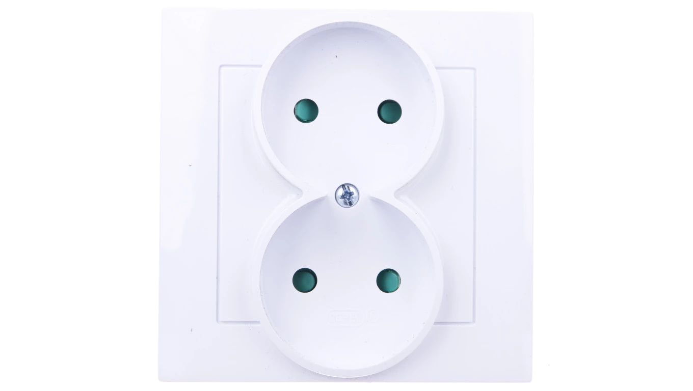 AS Gniazdo podwójne b/u z przesłonami białe GP-2GP/00