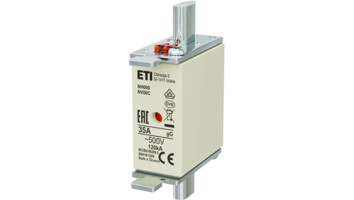 Bezpiecznik nożowy Wkładka topikowa, przemysłowa zwłoczna KOMBI NH000, NH00C gG/gL 35A 500V ETI POLAM