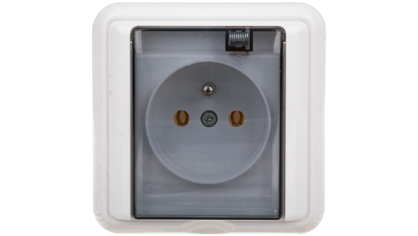 COSMO Gniazdo bryzgoszczelne z/u IP44 klapka dymna białe 331439