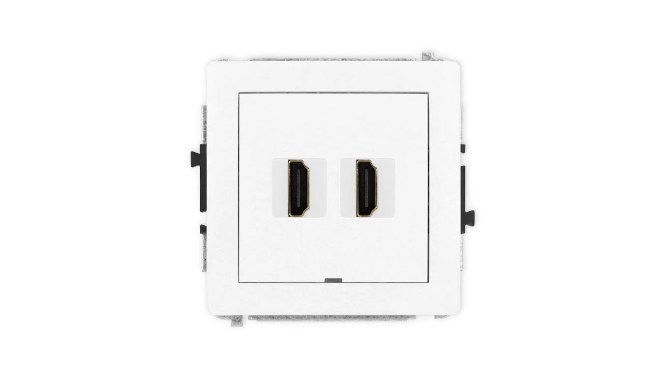 DECO Mechanizm gniazda podwójnego HDMI 2.1, 8K, bez pola opisowego biały DHDMIBO-6