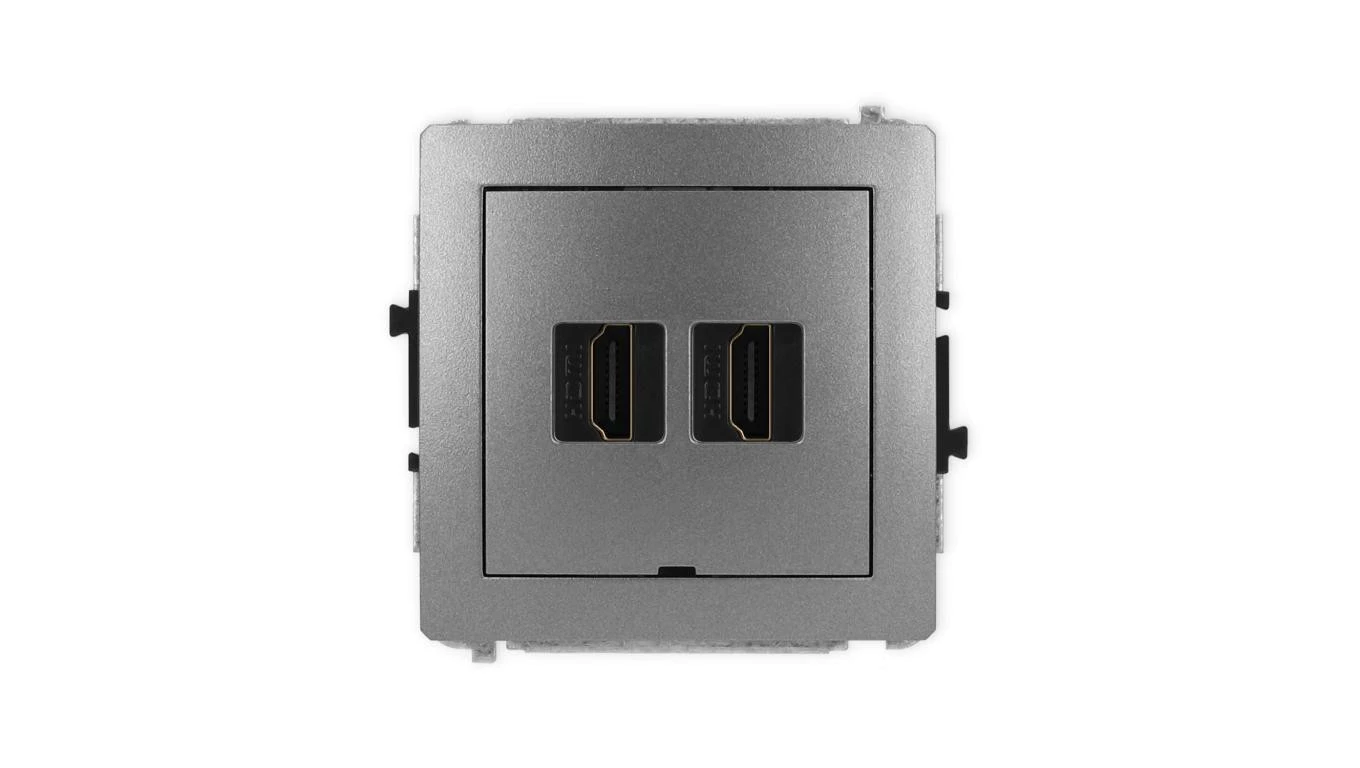 DECO Mechanizm gniazda podwójnego HDMI 2.1, 8K, bez pola opisowego grafitowy 11DHDMIBO-6