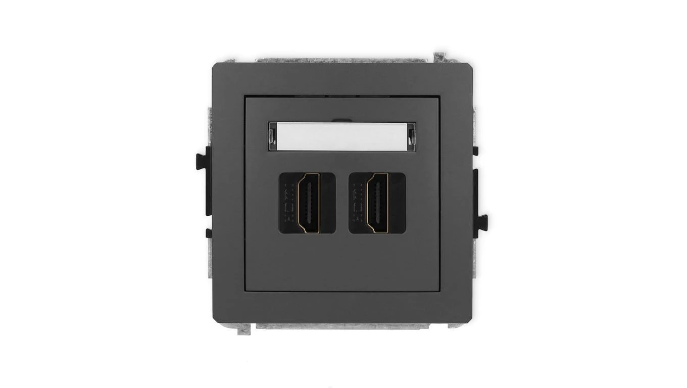 DECO Mechanizm gniazda podwójnego HDMI 2.1, 8K grafitowy mat 28DHDMI-6