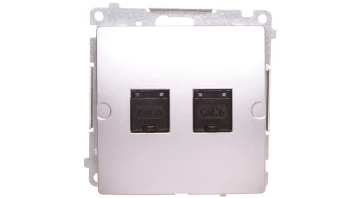 Simon Basic Gniazdo komputerowe RJ45, kategoria 6, podwójne z przesłoną srebrny mat BM62.01/43