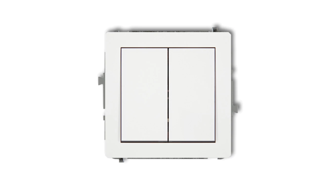 DECO Mechanizm łącznika jednobiegunowego ze schodowym (dwa klawisze bez piktogramów, osobne zasilanie) biały DWP-10.21