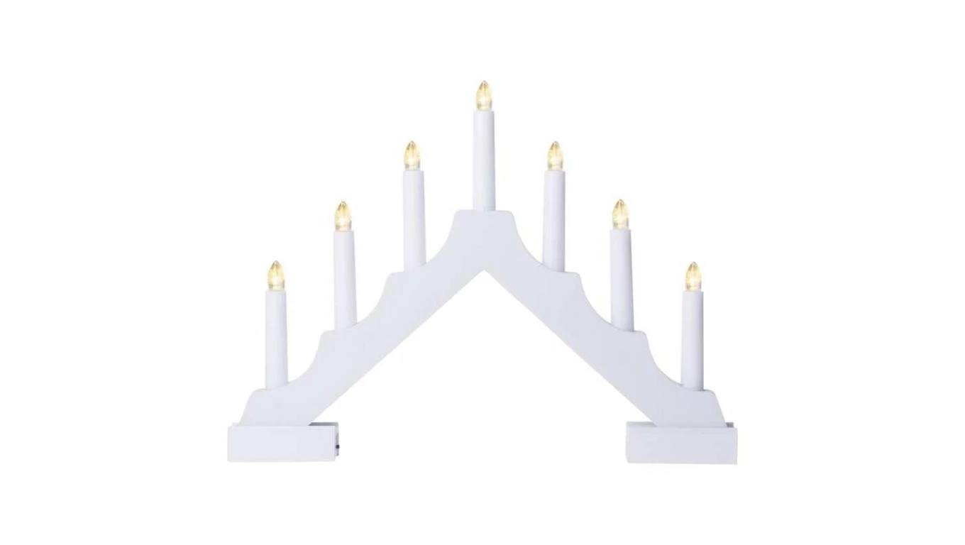 Dekoracje - świecznik biały drewniany 7 LED, 29 cm 2x AA ciepła biel, IP20, timer DCAW12