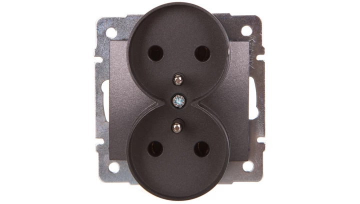 DOMO Gniazdo podwójne z uziemieniem śrubowe 16A 250V grafit 011253141 24914