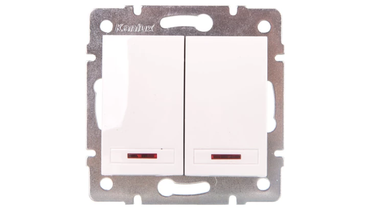 DOMO Łącznik dwugrupowy świecznikowy z LED szybkozłączka 10AX 250V biały 011120202 24724