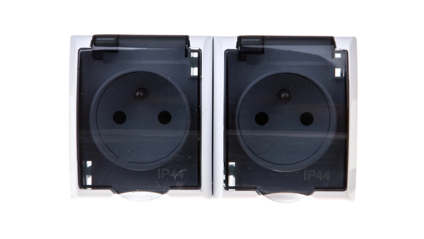 FALA Gniazdo hermetyczne podwójne z/u IP44 z przesłonami klapka przezroczysta białe GNH-2HZP/00/d