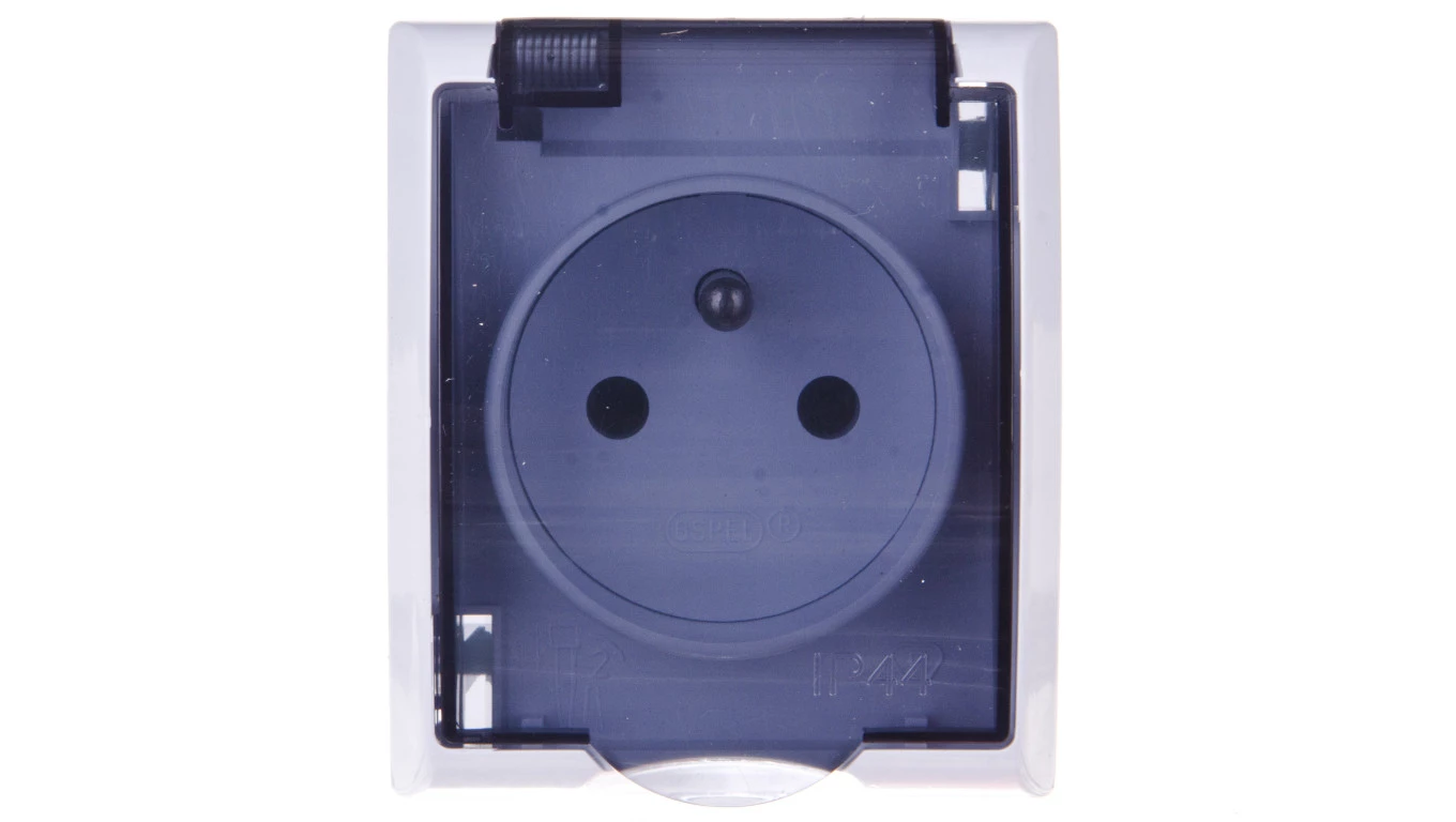 FALA Gniazdo hermetyczne pojedyncze z/u IP44 klapka przezroczysta białe GNH-1HZ/00/d