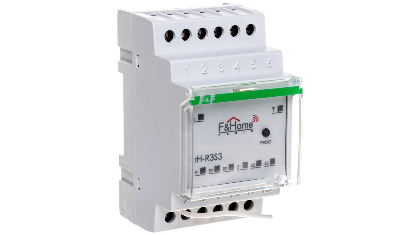 FiHome Radio Przekaźnik trzykanałowy z nadajnikiem trzykanałowym na szynę DIN LongRange rH-R3S3-LR