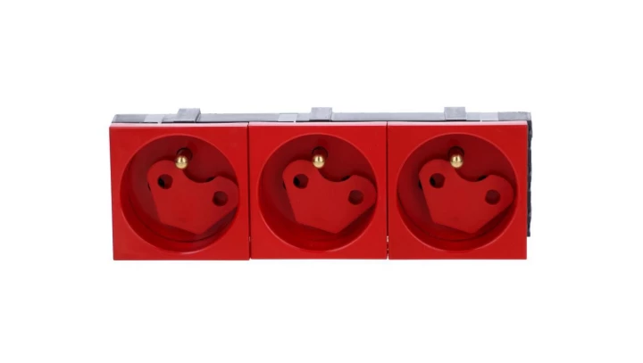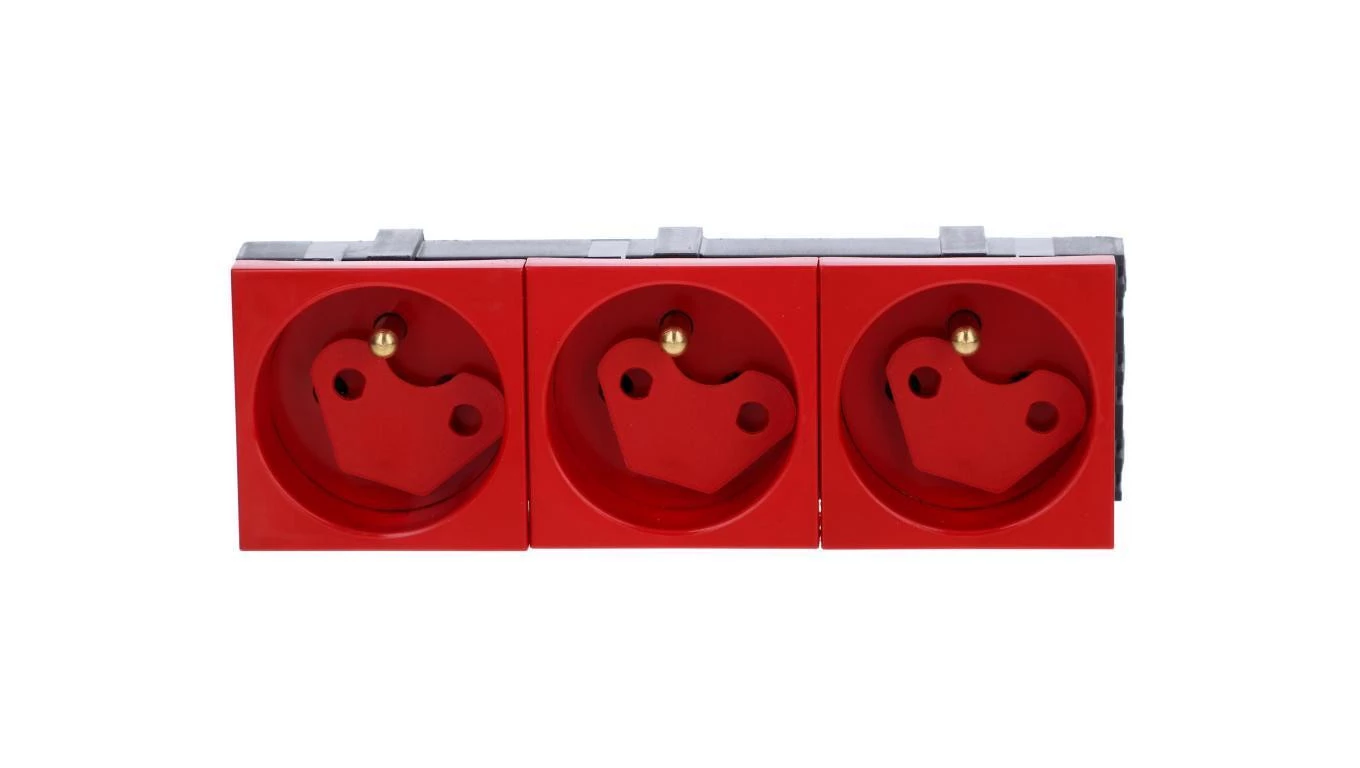 Gniazdo modułowe potrójne z blokadą i kluczem czerwone WP45X4577