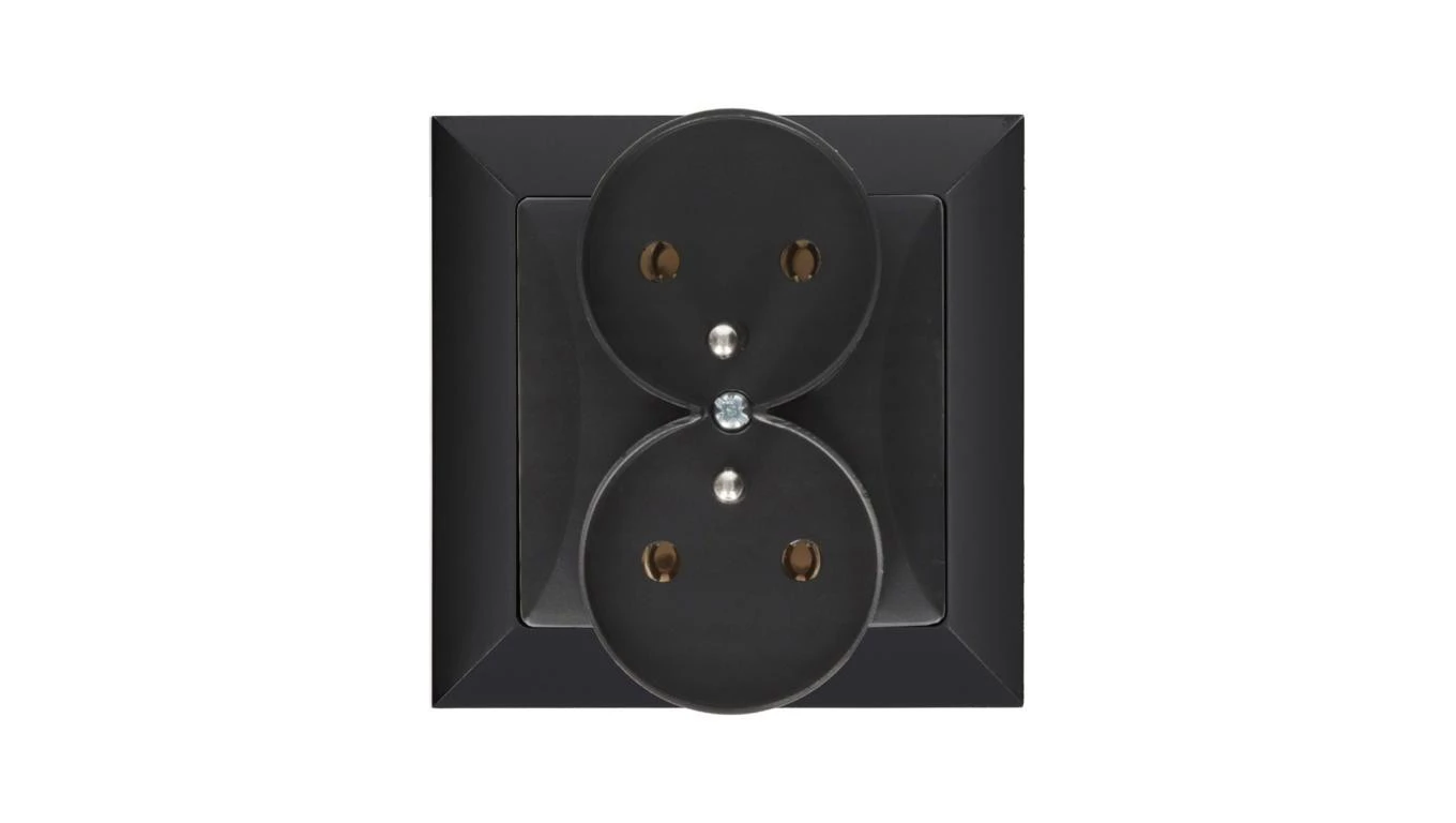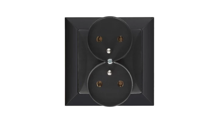 Gniazdo podtynkowe podwójne 2x2p+Z do ramki, Pola czarne, 33207
