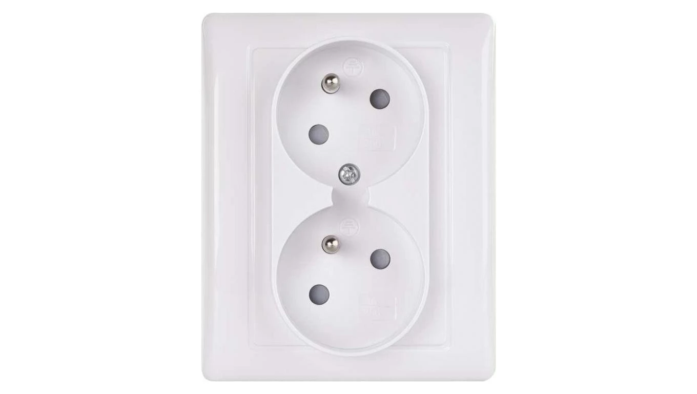 Gniazdo podwójne FRENCH IP20 błyszczące białe EMOS A6001.1
