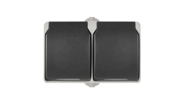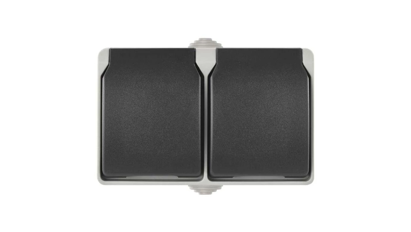 Gniazdo podwójne IP44 szaro-czarne EMOS A1397.1