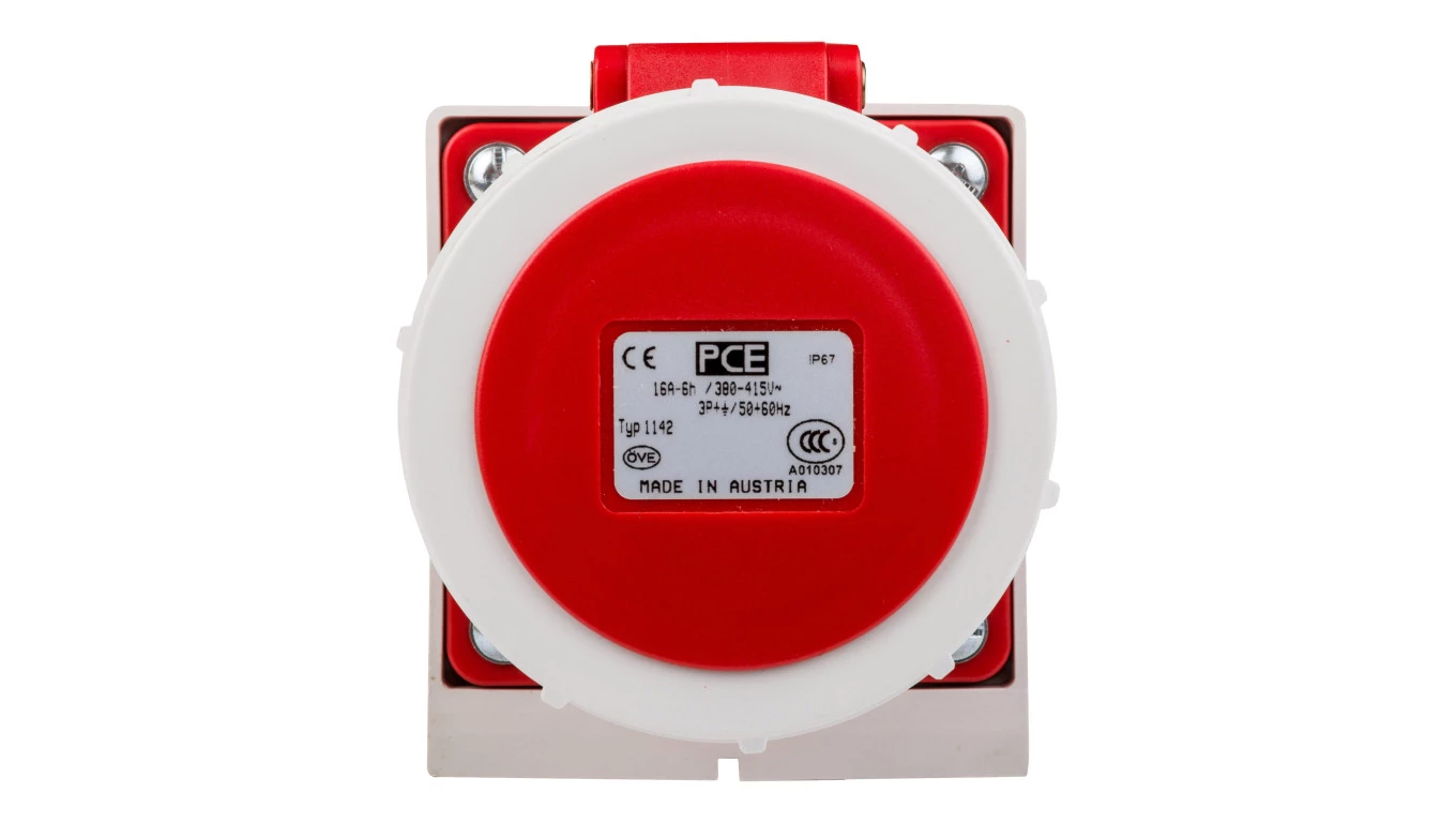 Gniazdo stałe 16A 4P 400V czerwone IP67 /bez dławnicy/ 1142-6