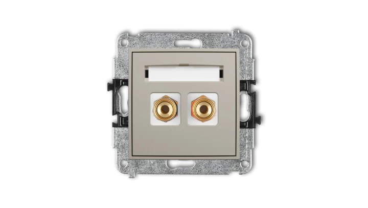 ICON Mechanizm gniazda głośnikowego pojedynczego (typu banan - czerwony i czarny, pozłacany, 4 mm2, skręcany) taupe 60IGG-4