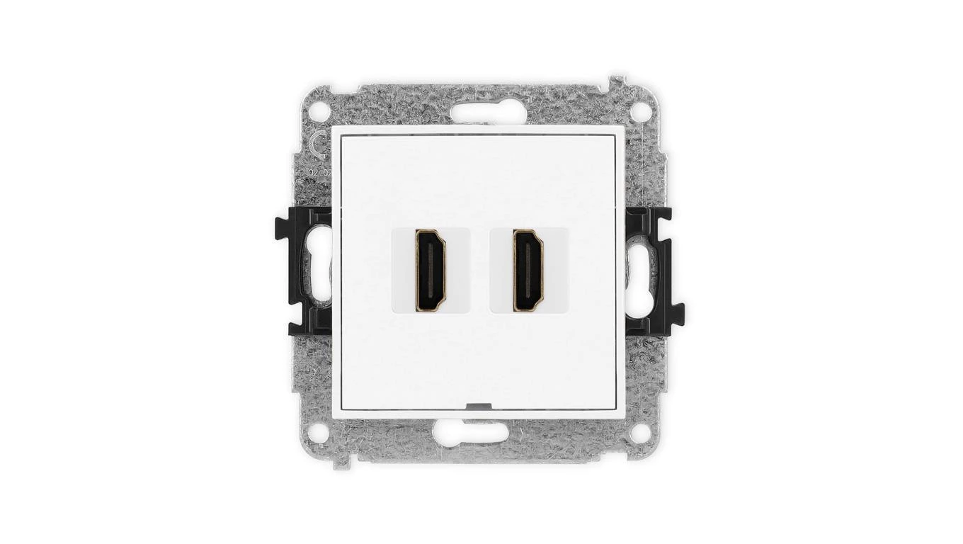 ICON Mechanizm gniazda podwójnego HDMI 2.1, 8K, bez pola opisowego biały mat 25IHDMIBO-6