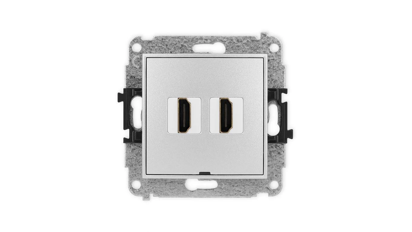 ICON Mechanizm gniazda podwójnego HDMI 2.1, 8K, bez pola opisowego srebrny metalik 7IHDMIBO-6