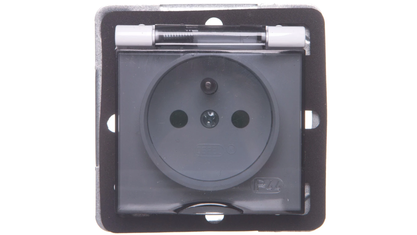 IMPRESJA Gniazdo bryzgoszczelne z/u IP44 z przesłonami klapka przezroczysta białe GPH-1YZP/m/00/d