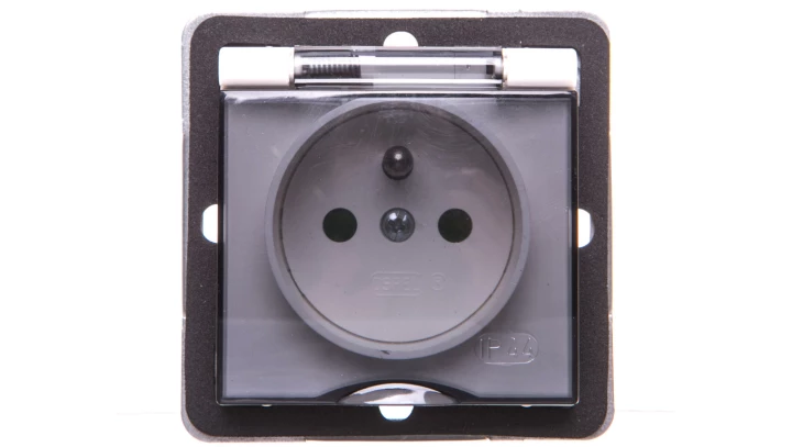 IMPRESJA Gniazdo bryzgoszczelne z/u IP44 z przesłonami klapka przezroczysta ecrue GPH-1YZP/m/27/d