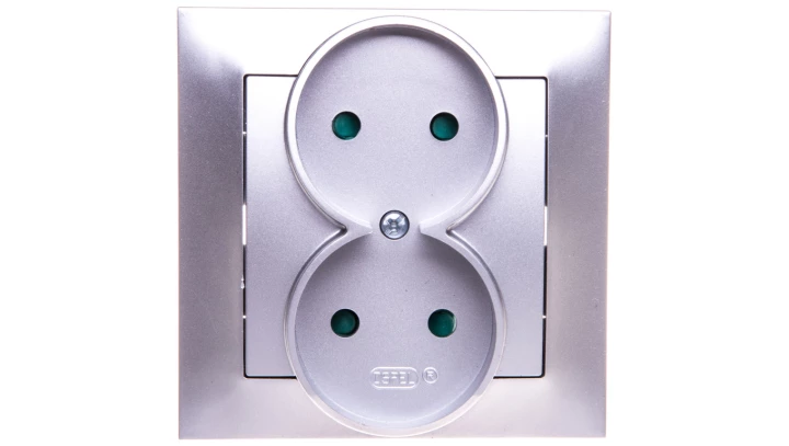 IMPRESJA Gniazdo podwójne b/u z przesłonami srebro GP-2YP/18