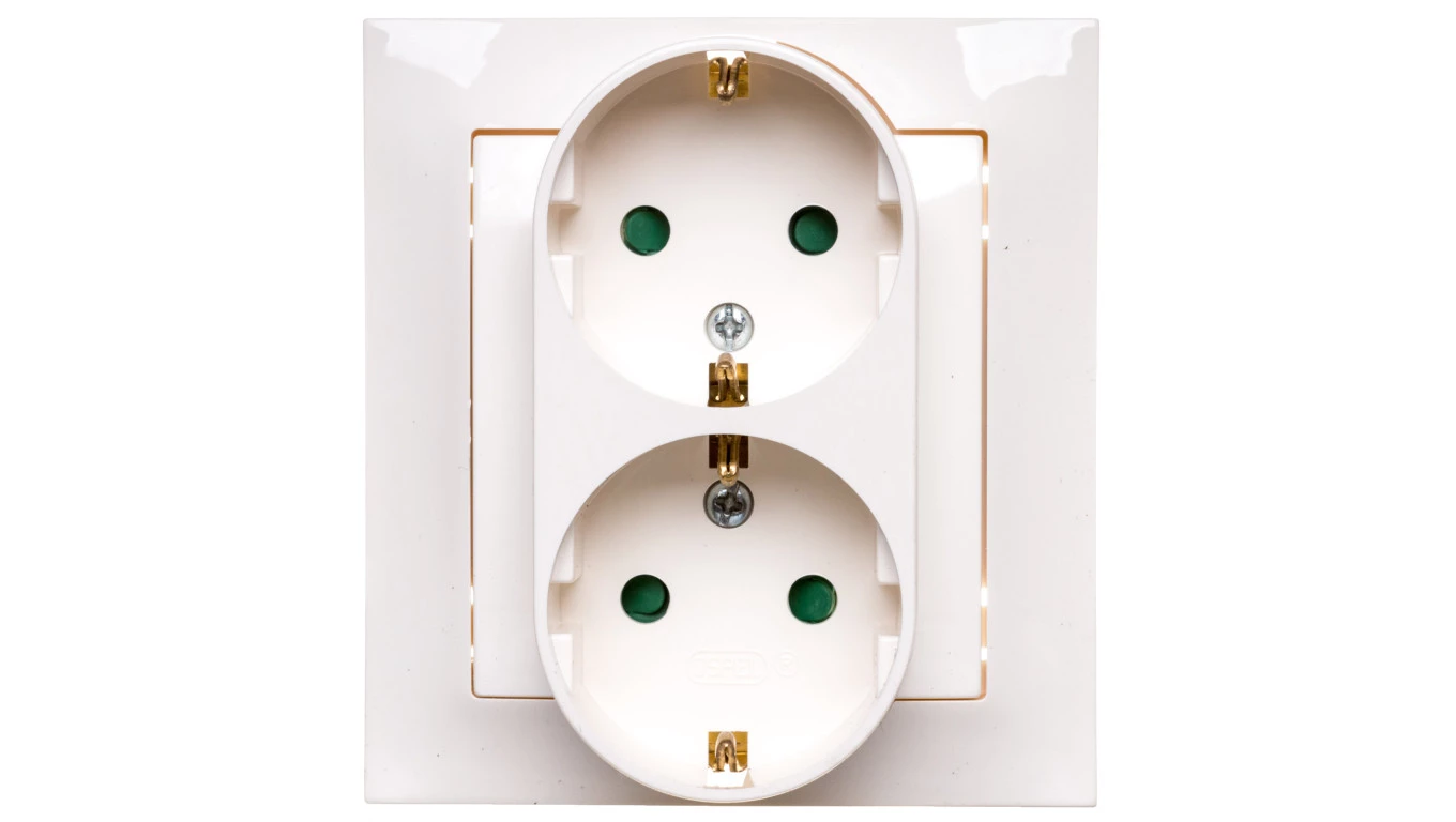 IMPRESJA Gniazdo podwójne z/u Schuko z przesłonami ecru GP-2YSP/27