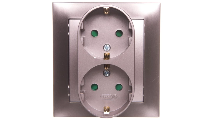 IMPRESJA Gniazdo podwójne z/u Schuko z przesłonami tytan GP-2YSP/23