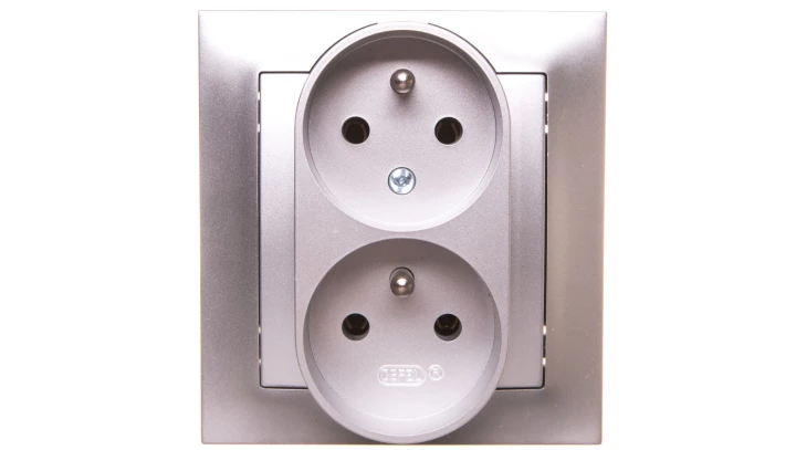 IMPRESJA Gniazdo podwójne z/u z niezamiennością faz srebrne GP-2YC/18