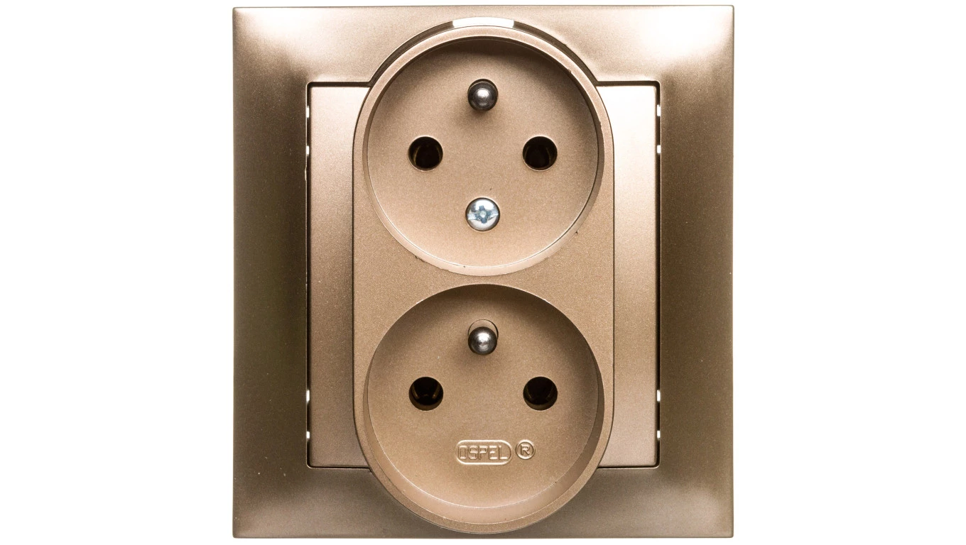 IMPRESJA Gniazdo podwójne z/u z niezamiennością faz złoty metalik GP-2YC/28