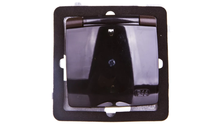 KARO Gniazdo bryzgoszczelne z/u Schuko IP44 z przesłonami klapka przezroczysta czekoladowy metalik GPH-1SSP/m/40/d