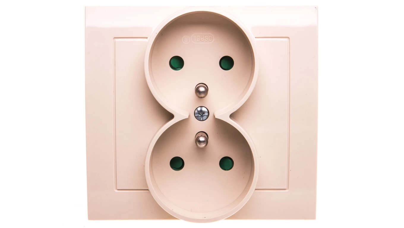 KIER Gniazdo podwójne z/u z przesłonami beżowe GP-2WZP/01