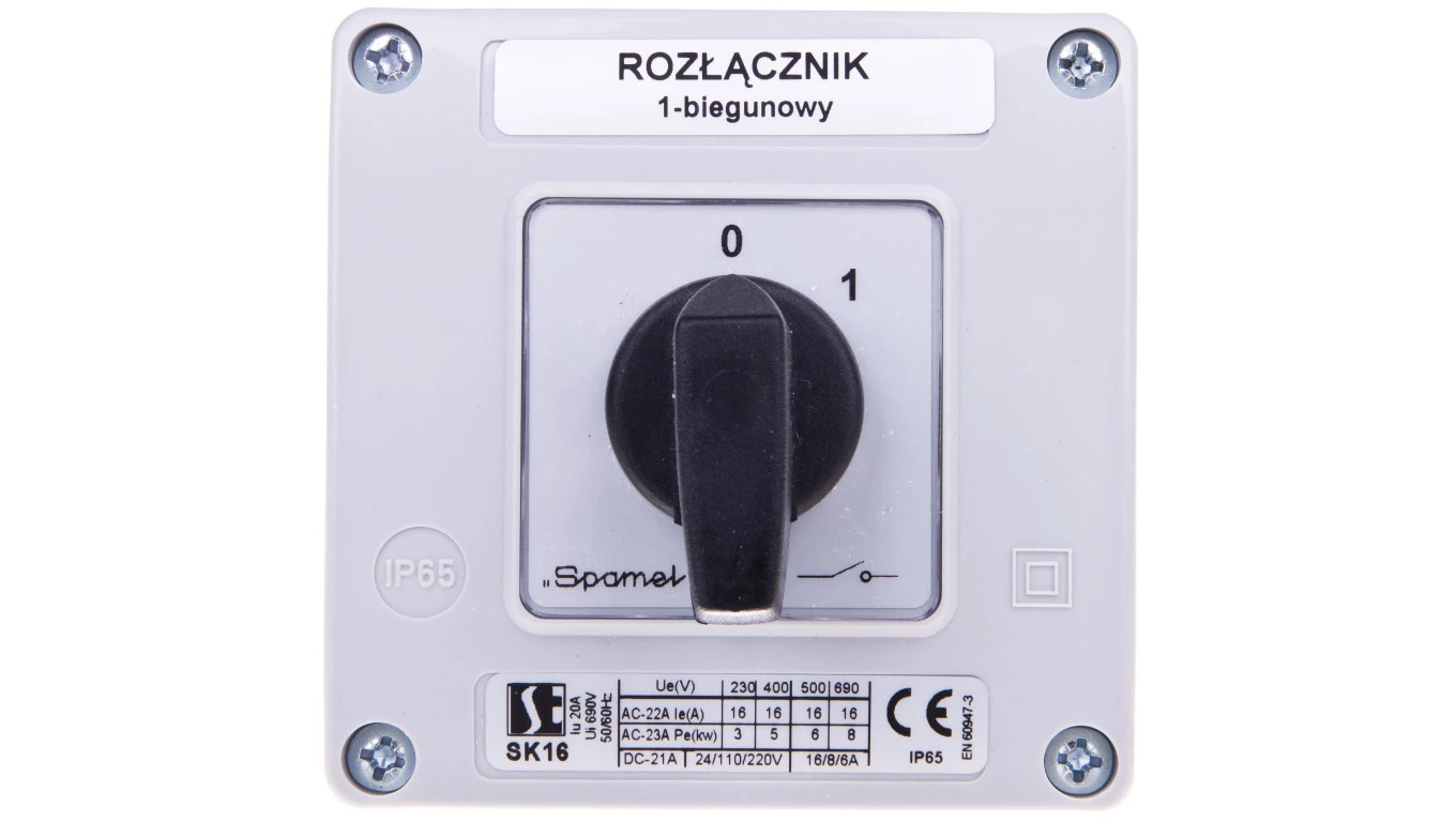 Łącznik krzywkowy 0-1 1P 16A w obudowie SK16-1.825OB11