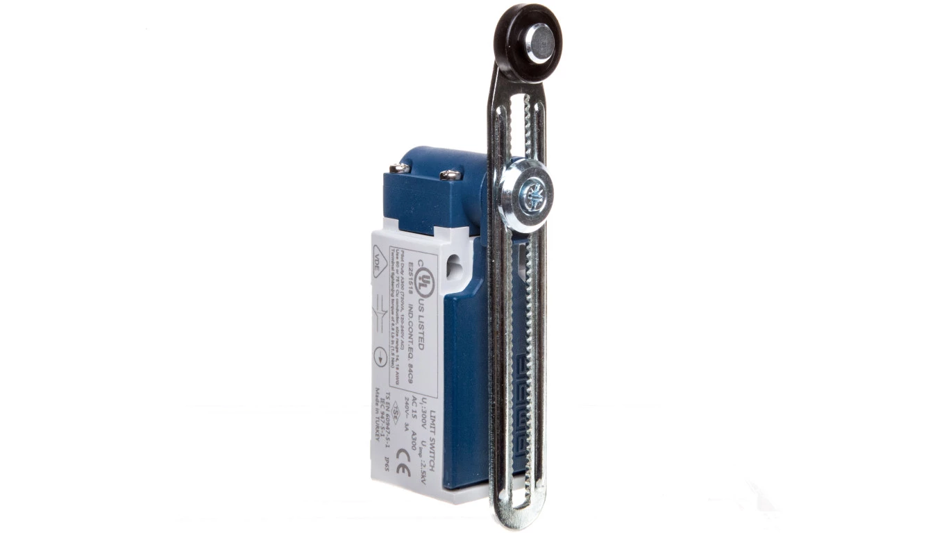 Łącznik L5 w obudowie z tworzywa, 1NC+1NO, długa regulowana dźwignia z rolką z tworzywa, T0-L5K13MEP123