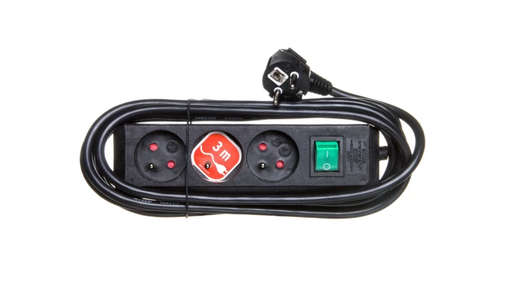 Listwa zasilajaca Eco-Line 3m /z wyłącznikiem/ 3x230V czarna H05VV-F 3G1,5 1152304130