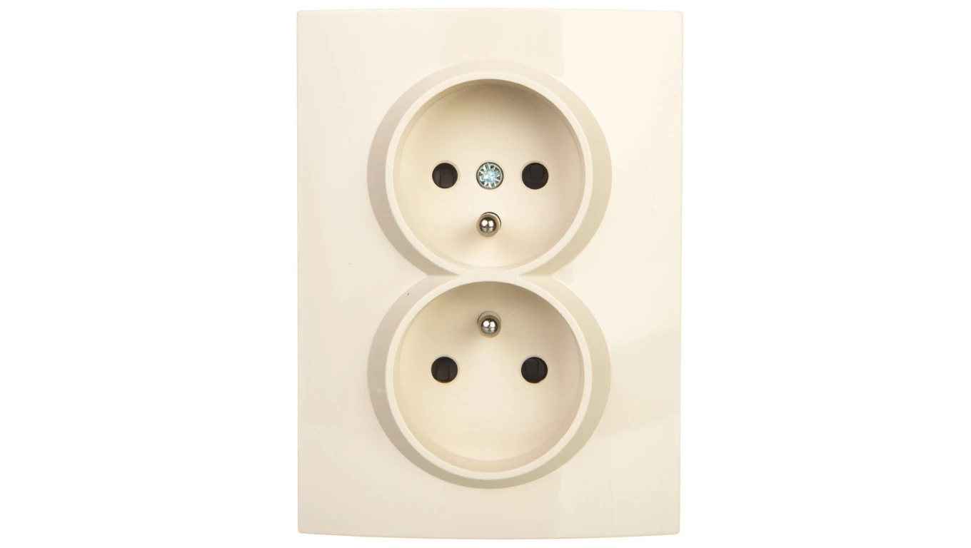 LOGI Gniazdo podwójne kompletne ochrona styków śrubowy Kremowy 16A 250V 021260103 25152