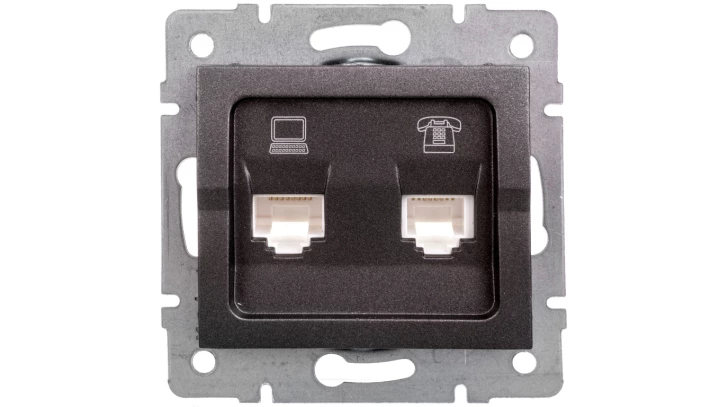 LOGI Gniazdo teleinformatyczne (RJ45 Cat 5e+RJ11) grafit 021430041 25289
