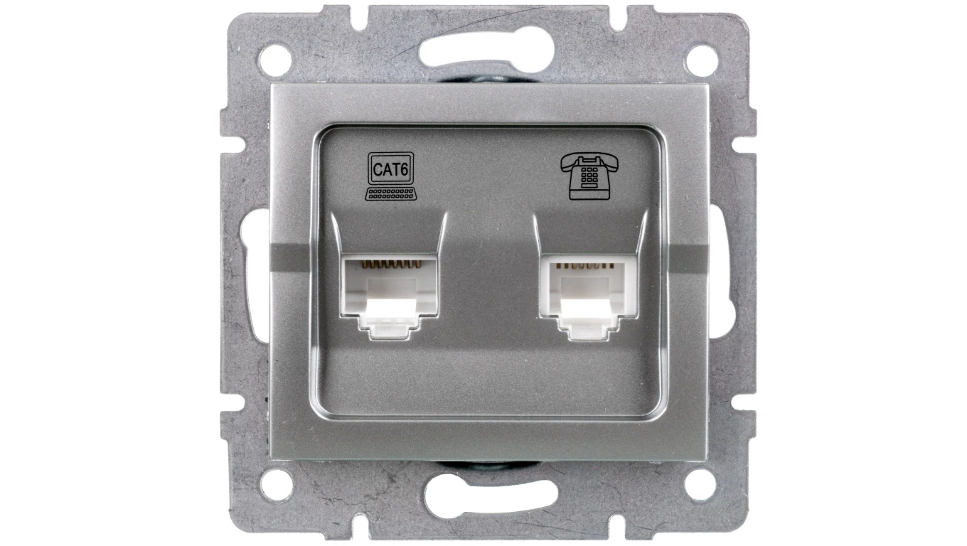LOGI Gniazdo teleinformatyczne (RJ45 Cat 6+RJ11) srebrne 021440043 25231