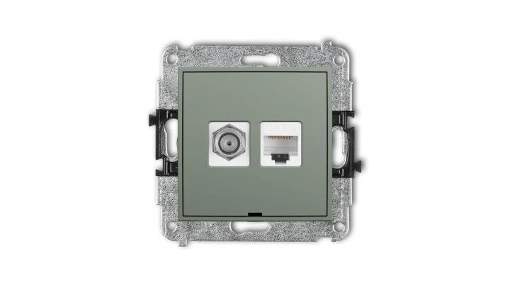 MINI Mechanizm gniazda antenowego poj. typu F (SAT) + gniazda komp. 1xRJ45, kat. 6, 8-stykowy, bez opisu szałwiowy 61MGFKBO-3