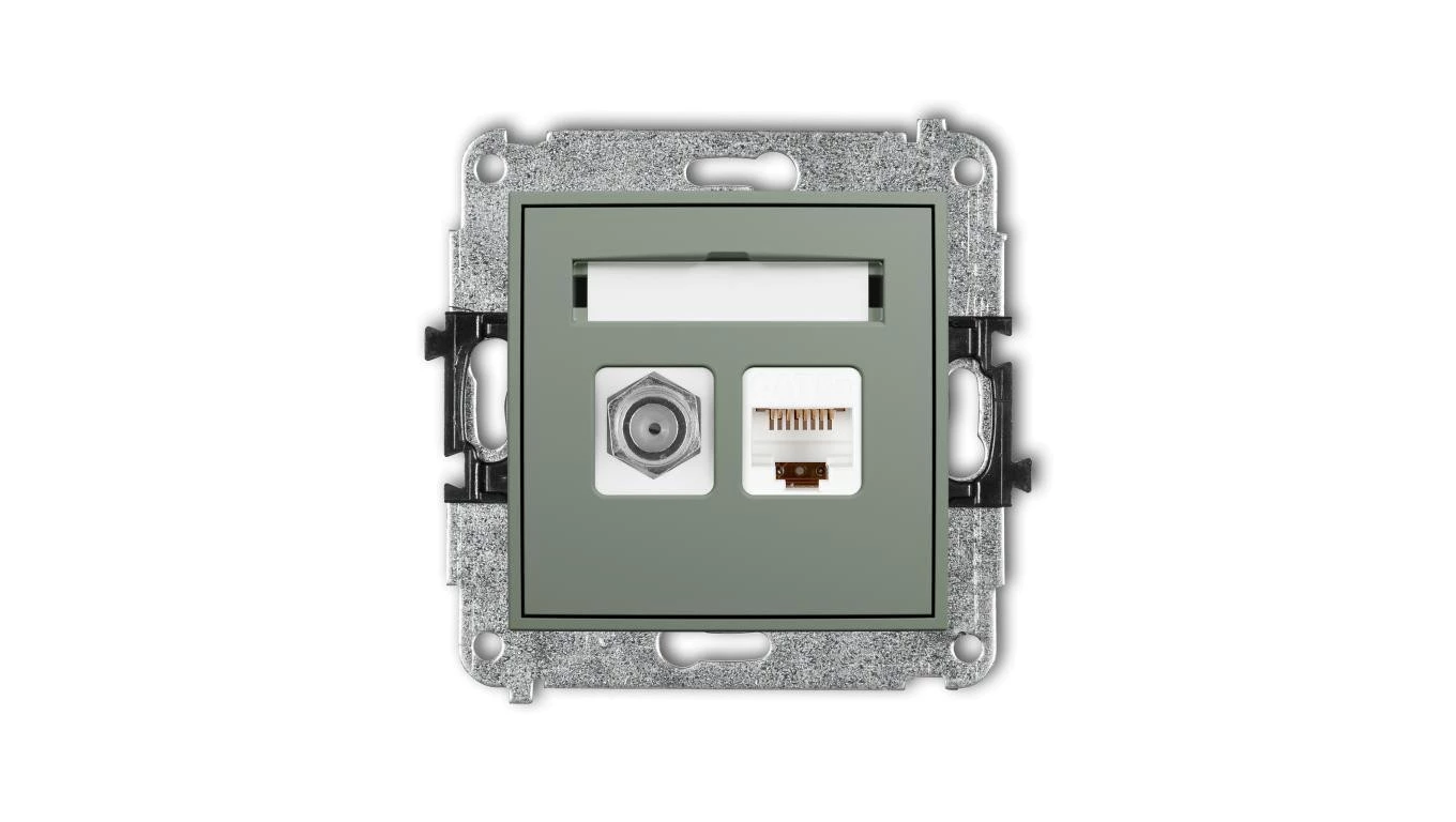 MINI Mechanizm gniazda antenowego poj. typu F (SAT) + gniazda komp. poj. 1xRJ45, kat. 5e, 8-stykowy szałwiowy 61MGFK-1