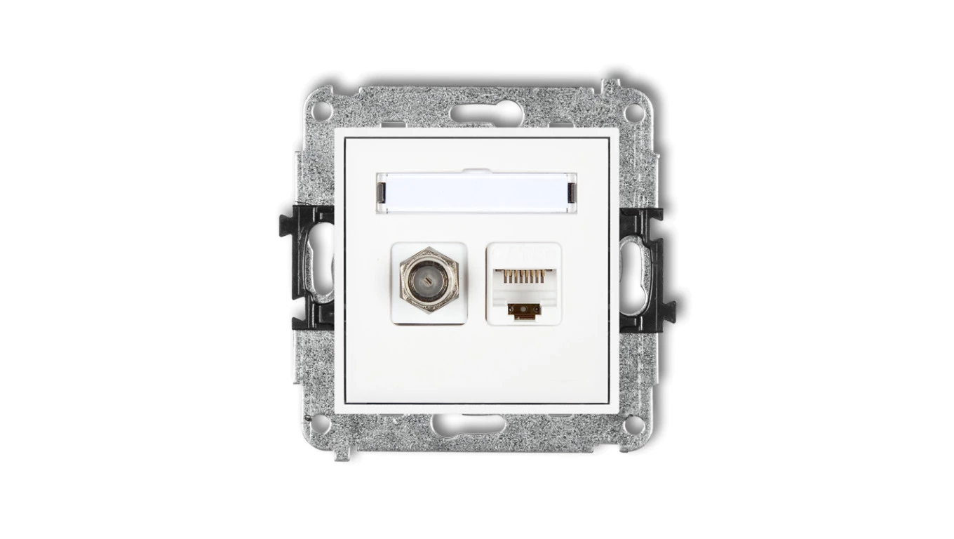 MINI Mechanizm gniazda antenowego poj. typu F (SAT) + gniazda komp. poj. 1xRJ45, kat. 6, 8-stykowy biały MGFK-3