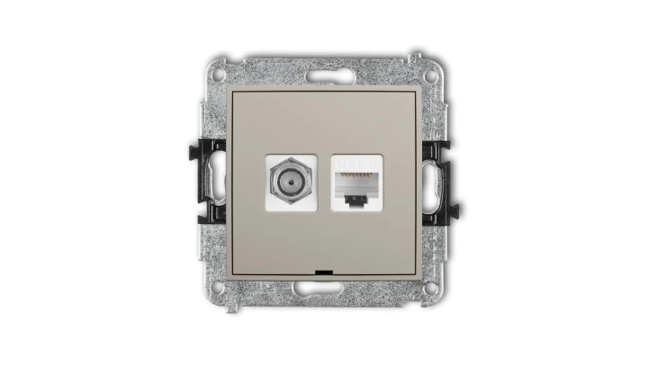 MINI Mechanizm gniazda antenowego poj. typu F (SAT) + gniazda komp. poj. 1xRJ45, kat. 6, 8-stykowy, bez opisu taupe 60MGFKBO-3