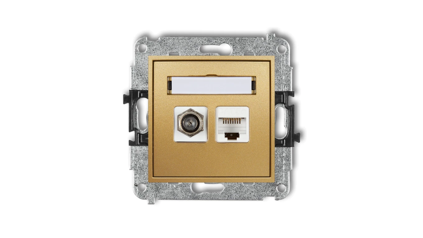 MINI Mechanizm gniazda antenowego poj. typu F (SAT) + gniazda komp. poj. 1xRJ45, kat. 6 ekranowane, 8-stykowy złoty 29MGFK-5
