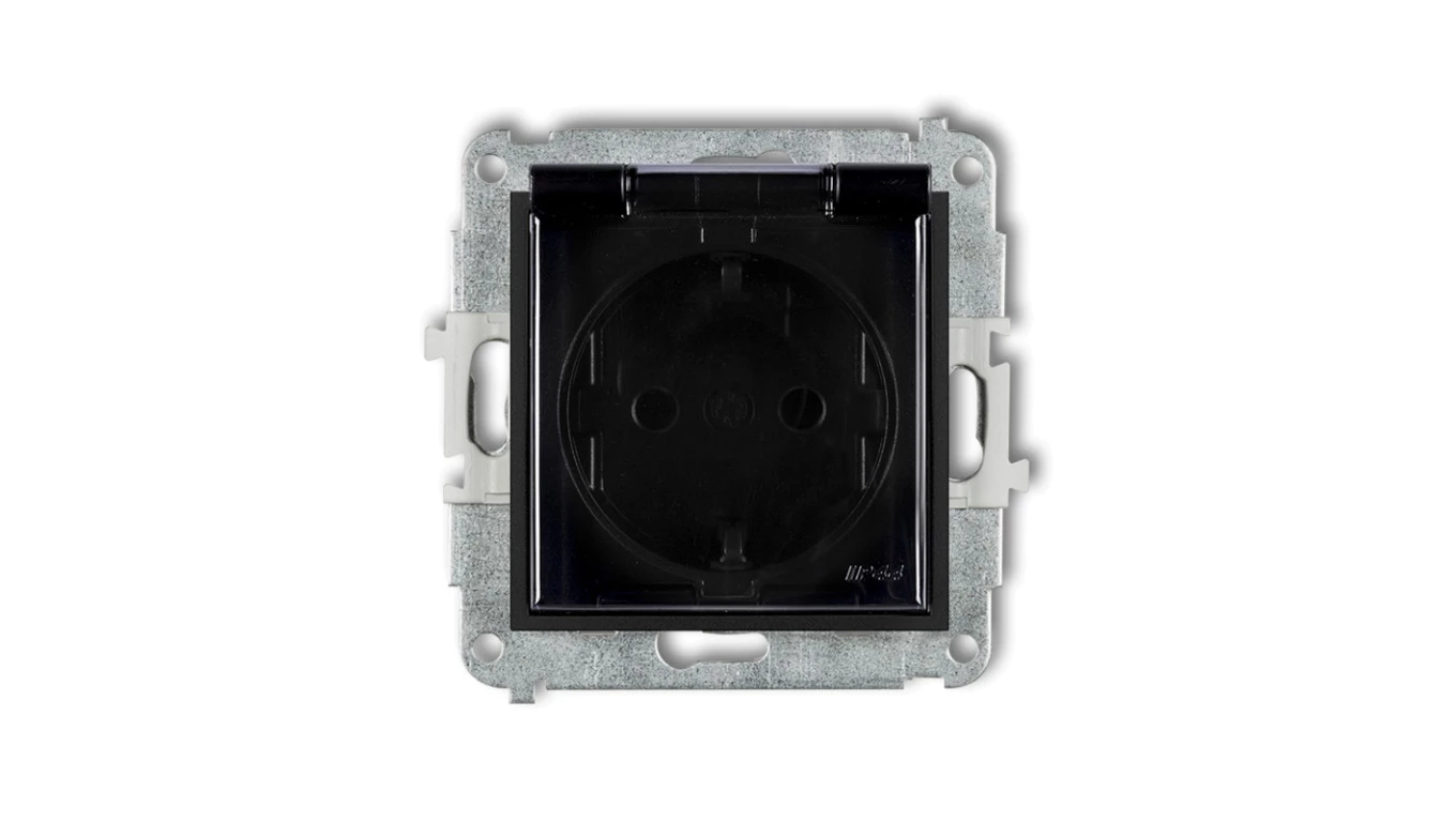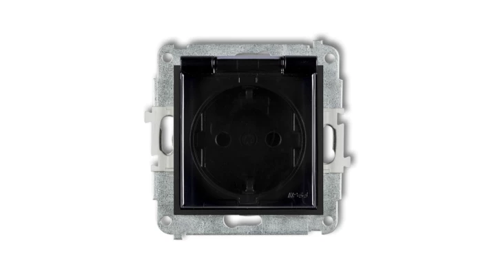 MINI Mechanizm gniazda bryzgoszczelnego z uziemieniem SCHUKO 2P+Z (klapka dymna, przesłony torów prądowych) czarny mat 12MGPB-1s