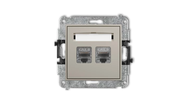 MINI Mechanizm gniazda komputerowego podwójnego 2xRJ45, kat. 8, ekranowany, 8-stykowy taupe 60MGK-12